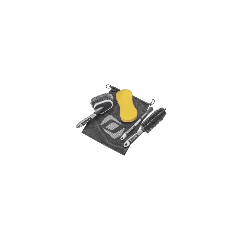 Właściwe narzędzie do właściwej pracy, nasz zestaw gąbek i pędzli zawiera konkretne produkty do określonych zadań. Wytrzymała szczotka ołówkowa do czyszczenia układu napędowego, miękka szczotka do ramy, mała szczotka dostępowa i gąbka do uzupełnienia — to pełny zestaw do wszystkich zadań związanych z czyszczeniem.